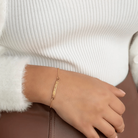 Dainty Hammered Bar Bracelet - Custom Name Silver Bracelet, Personalized Design