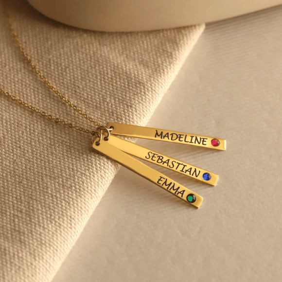 Personalized Bar Necklace with Birthstones - Name Necklace for Sisterhood